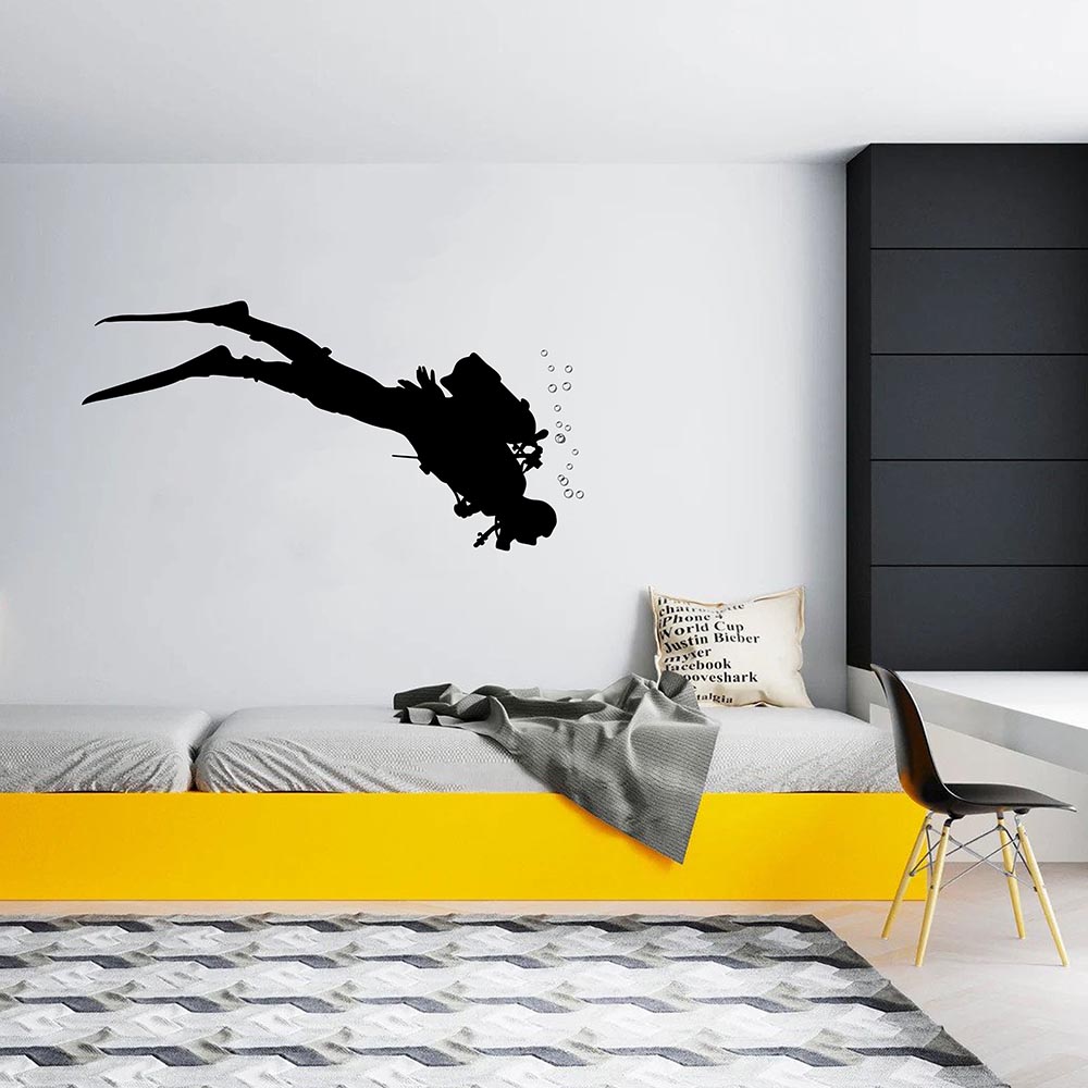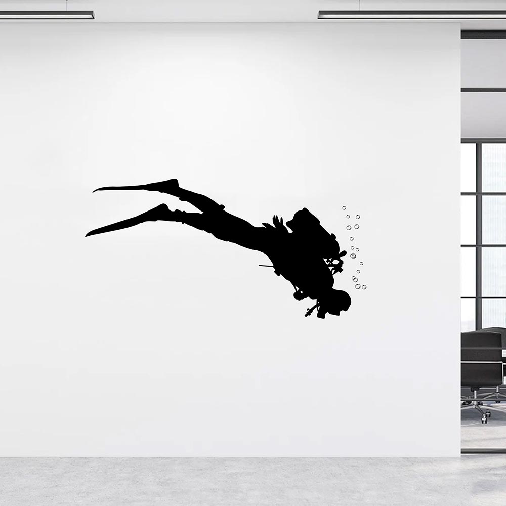 Stenska nalepka za ljubitelje potapljanja. Za vas nalepko izdelamo iz mikronske WallArt folije. Lahko se namesti na steno, steklo, ali drugo gladko površino.