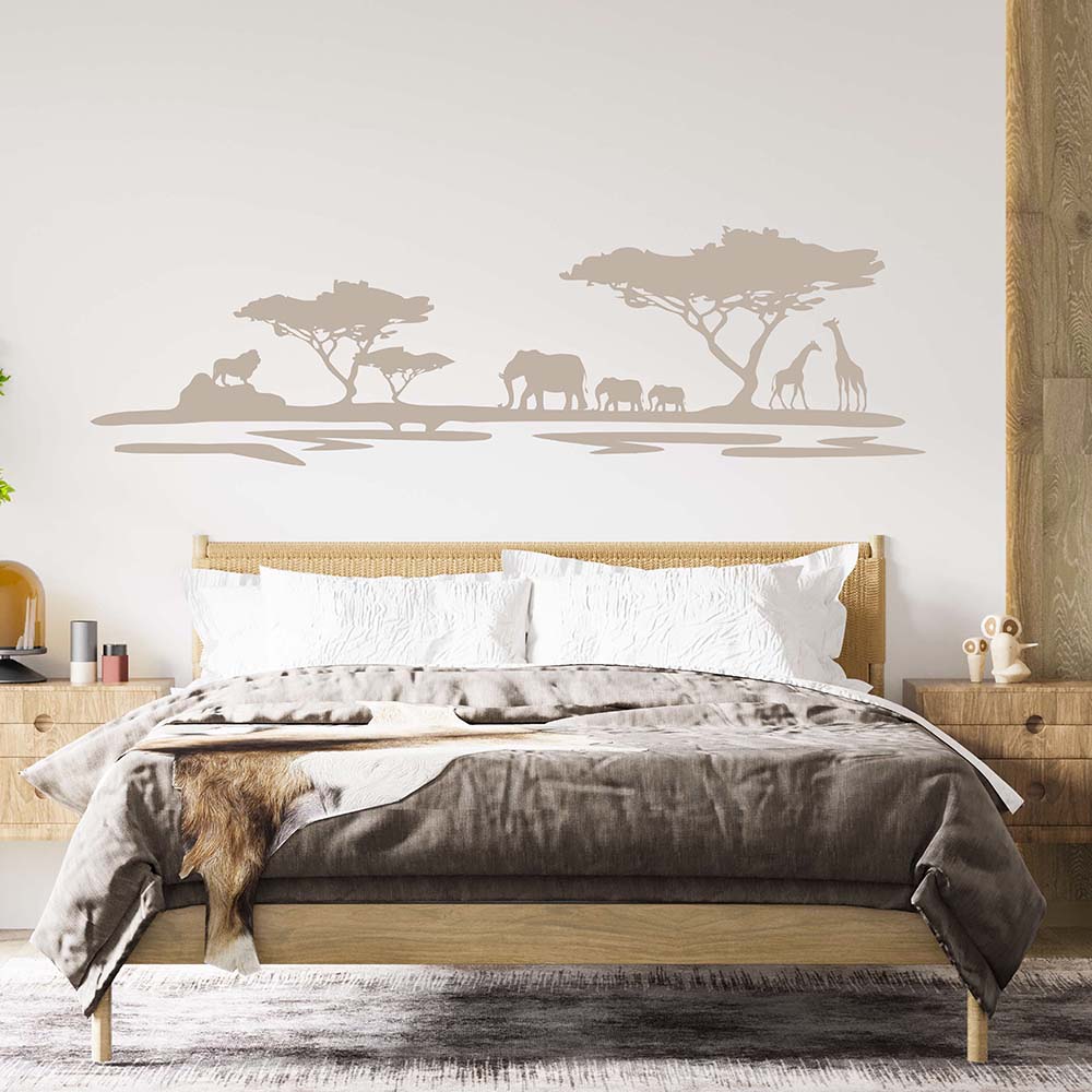Sonce, savana, živali in drevesa Afrike. Stenski motiv Afrike za vas izdelamo iz profesionalne mikronske mat Wall Art folije. Na steni motiv učinkuje, kot bi bile nanjo naslikan.