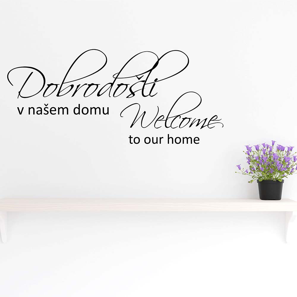 Stenski motiv dobrodošlice, ki ga lahko izdelamo v treh različicah – slovenski, angleški ali kombinirani. Izberite različico, ki vam ustreza, njeno velikost in barvo. Motiv izdelamo iz profesionalne mikronske mat Wall Art folije. Primerno za namestitev za na steno, steklo ali drugo gladko površino.