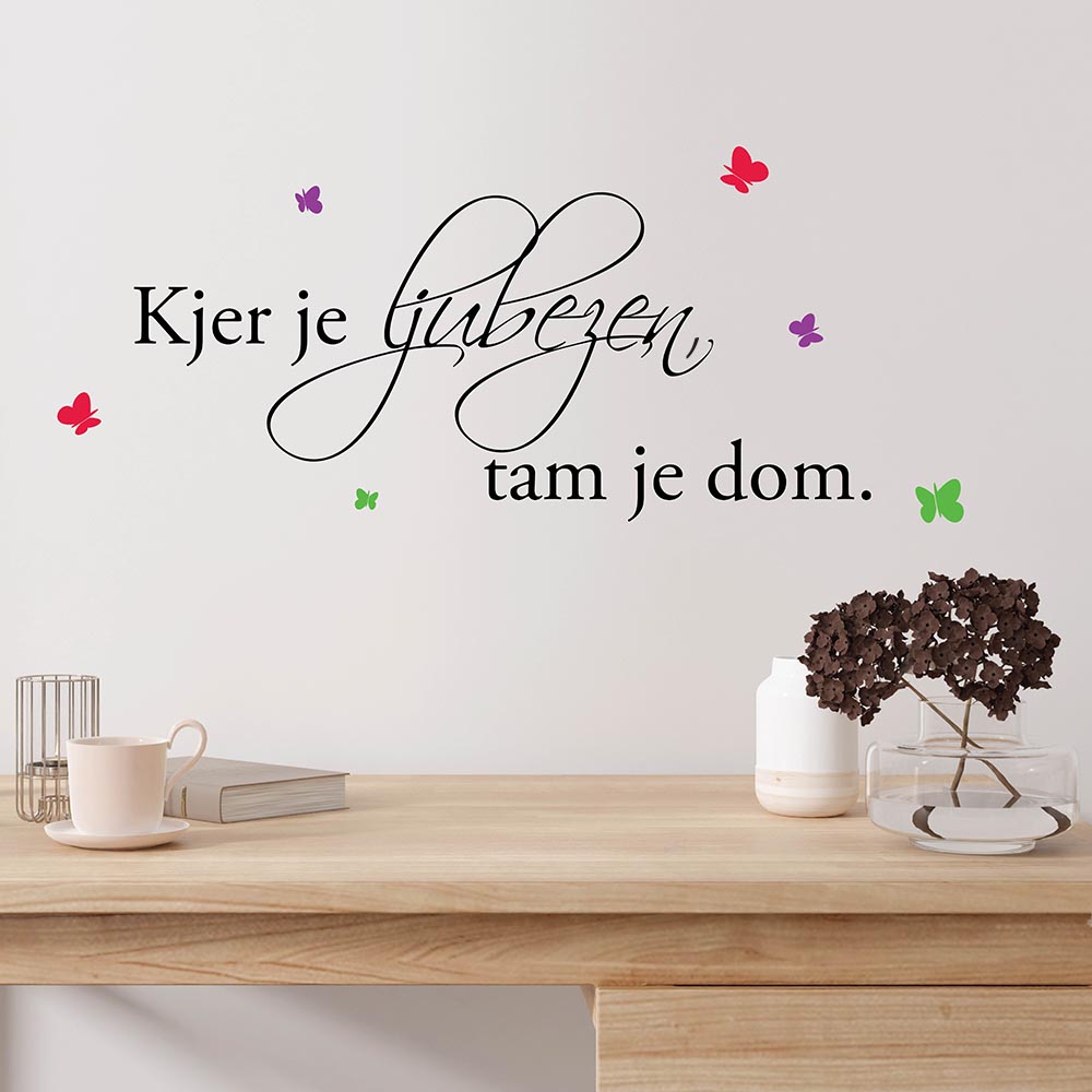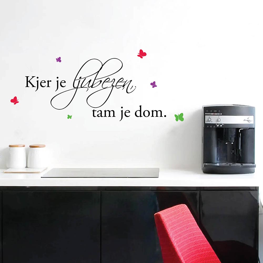 Čudovit motiv – napis, ki ga izdelamo iz najvalitetnejše mikronske folije. Dodamo še rdeče, vijolične in zelene metuljčke, ki jih namestite poleg napisa ločeno, kamor želite. V opombe lahko navedite tudi barve metuljčkov, če želite specifične barve.